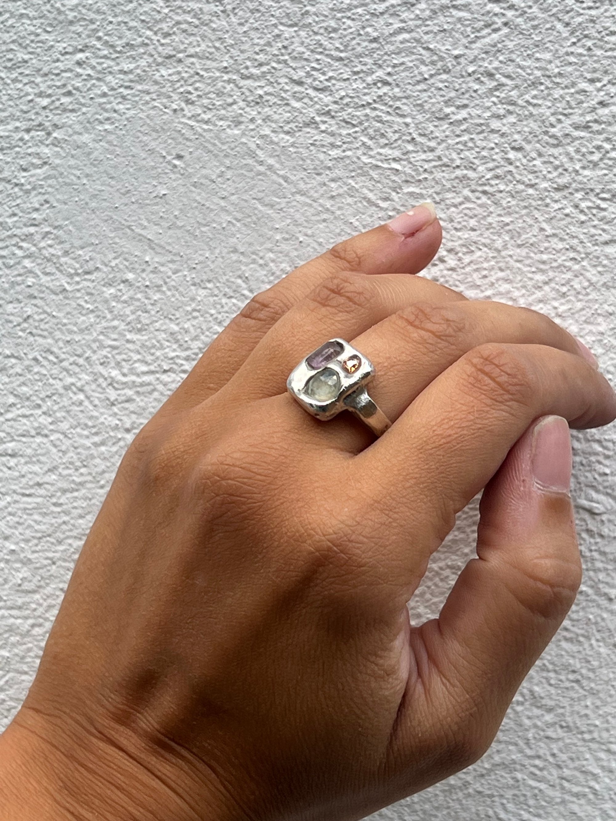 Our made-to-order Siggy 14 handcrafted with natural gemstones and casted in recycled sterling silver.