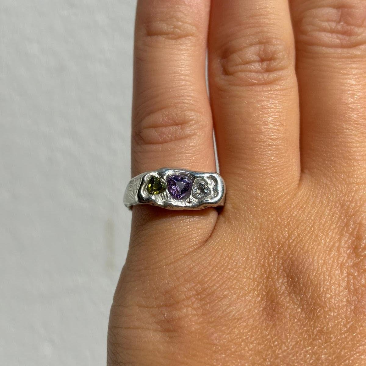 Our made-to-order Siggy 15 handcrafted with natural gemstones and casted in recycled sterling silver.