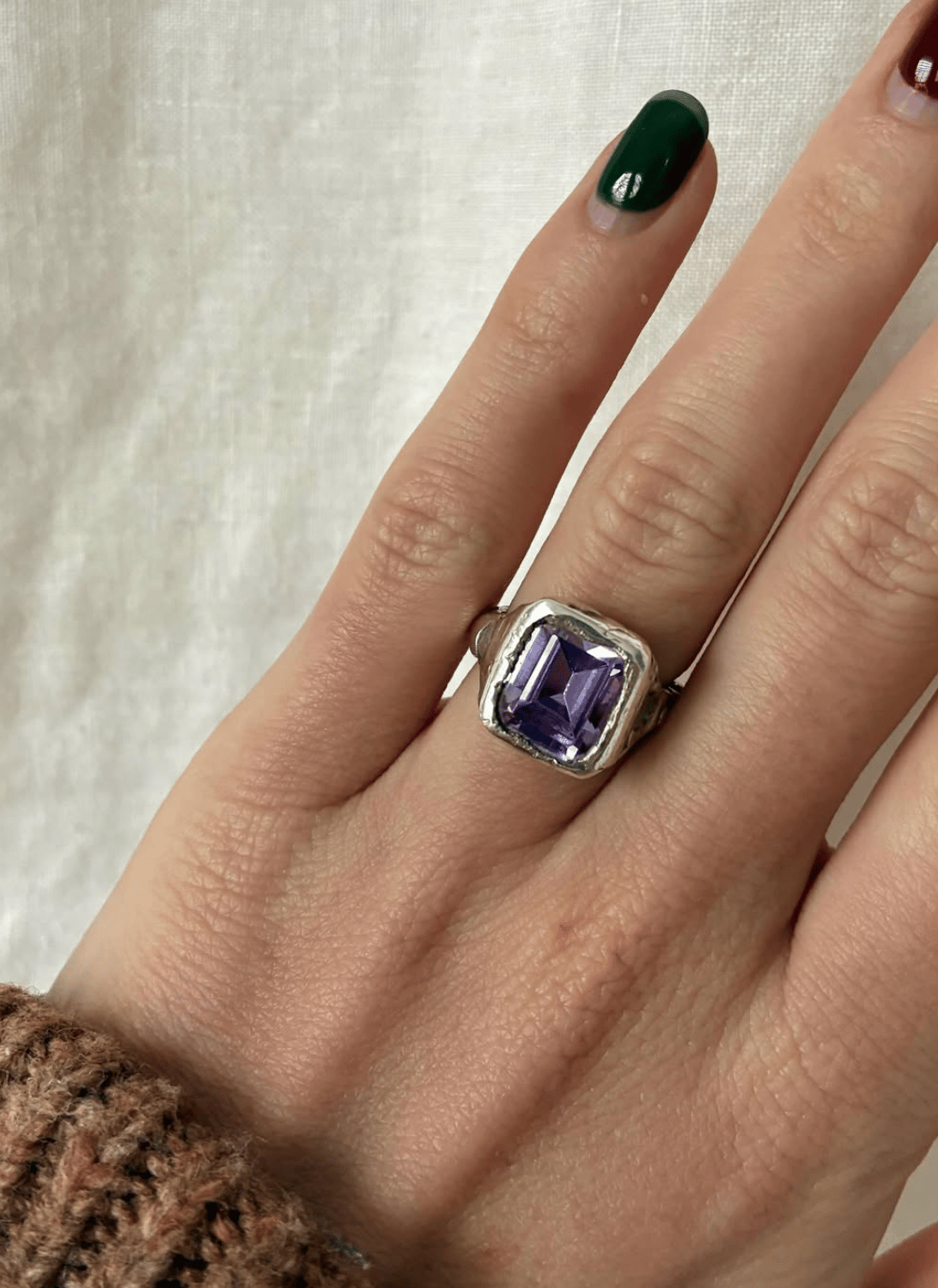 Our made-to-order Siggy 31, handcrafted with an aquamarine gemstone and casted in recycled sterling silver.