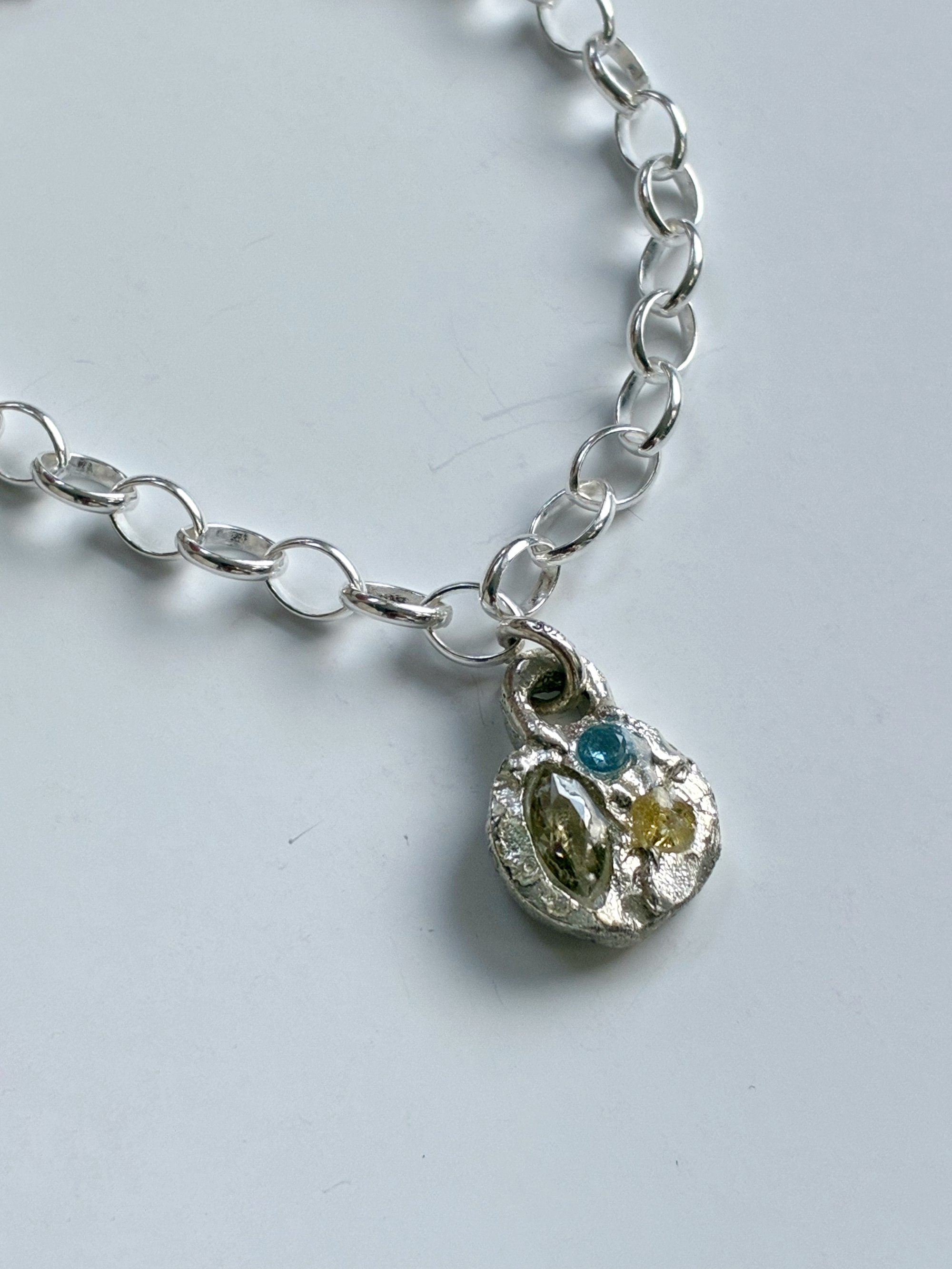 Our made-to-order Siggy Gemstone Bracelet, casted in recycled sterling silver.